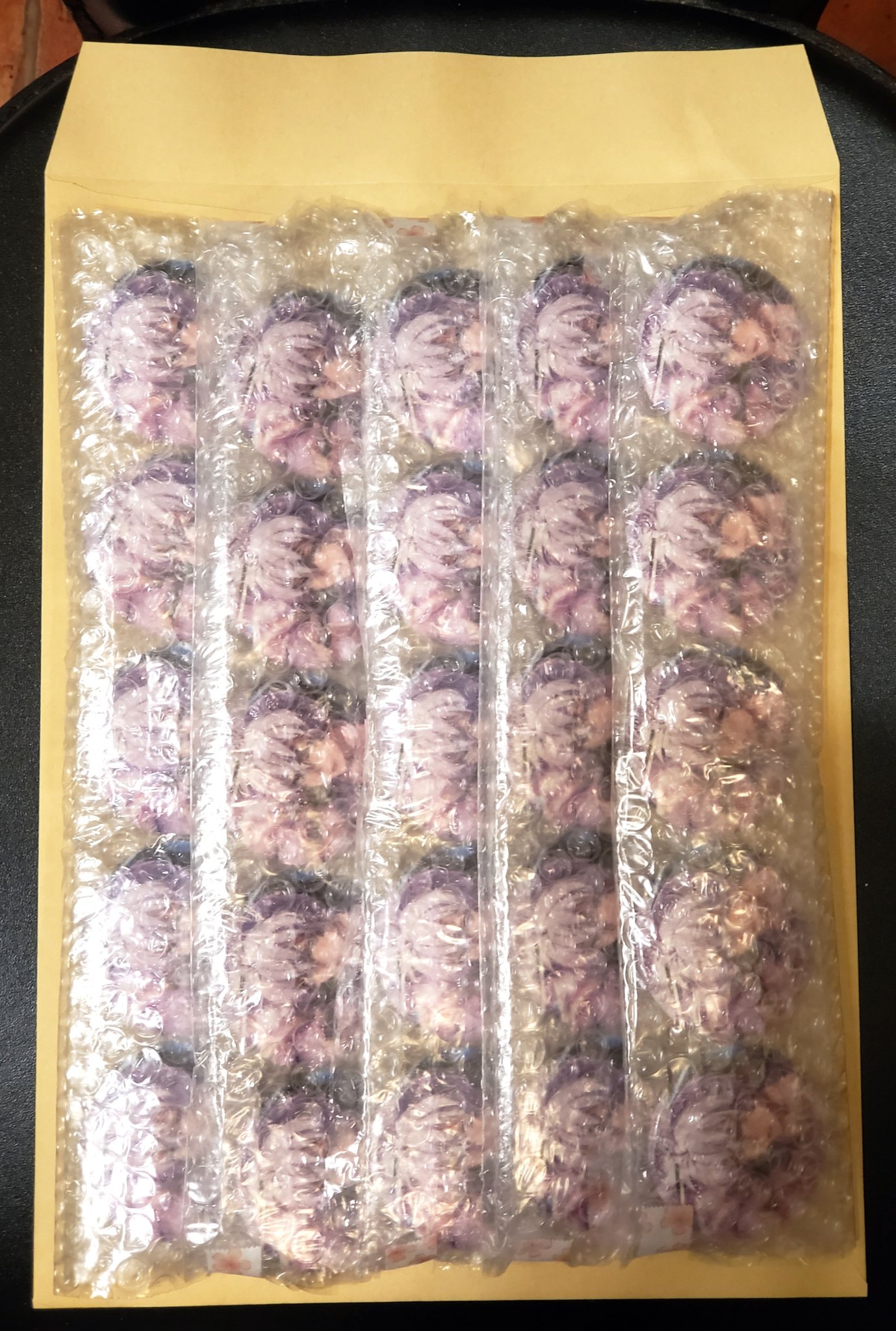 ハニワ على تويتر 缶バッジ梱包 複数個の場合 個別に緩衝材を二重巻きし 纏めて濡れ防止をいたします なお個数に関わらず 郵便局窓口から普通郵便 定形外の発送となります